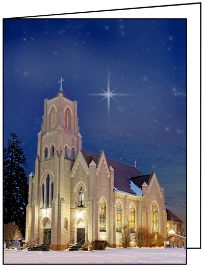 6 cards feature our beloved church on a starry, winter's night. The inside is blank so you can write your own special message! Cards which include envelopes, are 10 for $10 and can be purchased at the Parish Office during office hours from 8 a.m. to 1 p.m. Cash and checks only. Proceeds benefit St. Joseph School.
