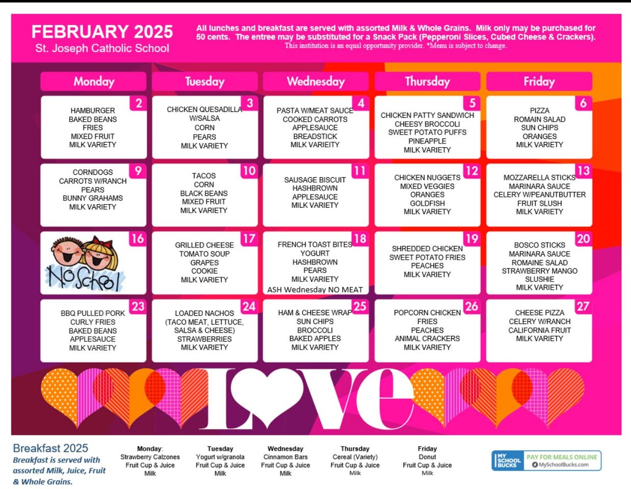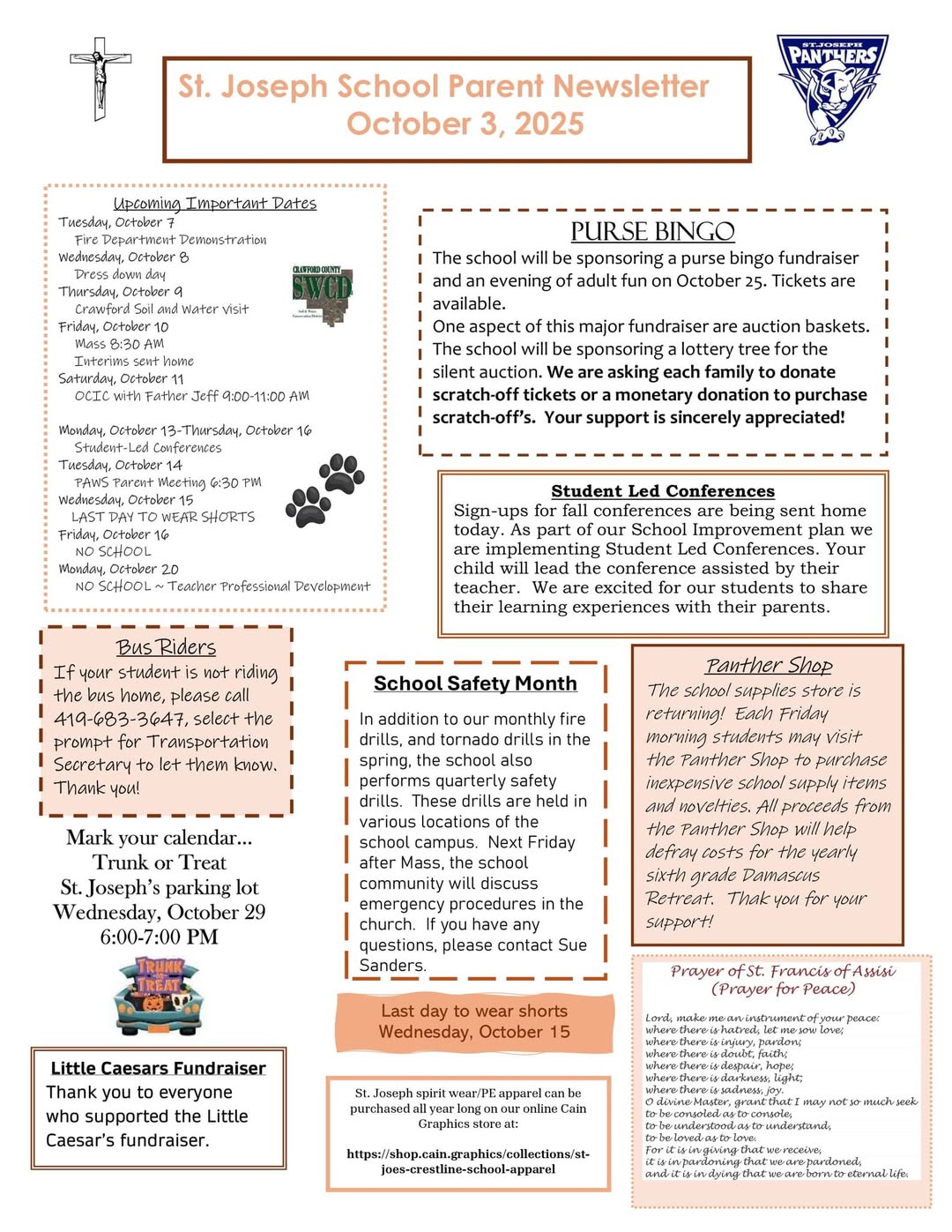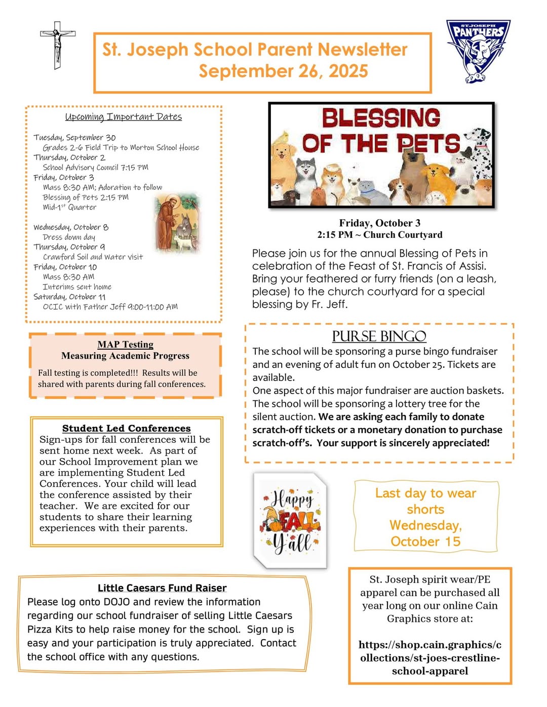 St. Joseph School has 46 students enrolled in grades PreK through 8 as of October 31, 2024